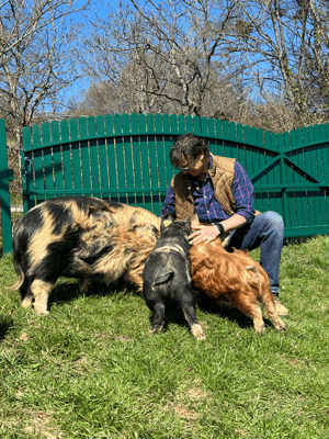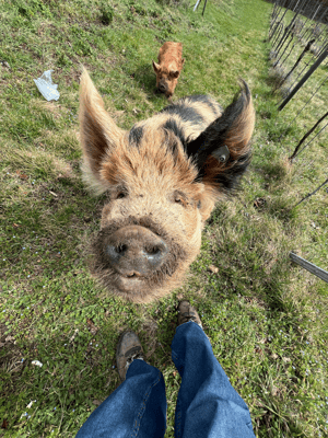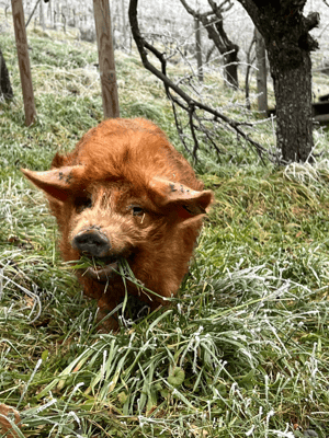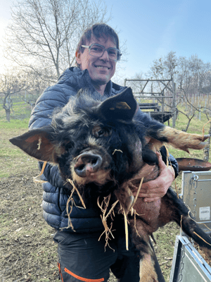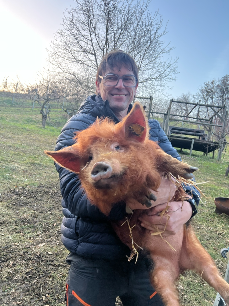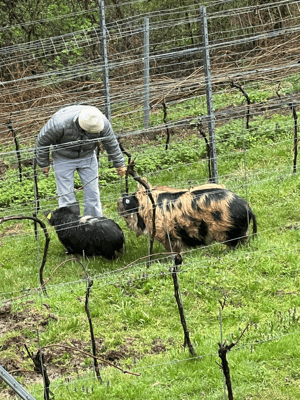 Die Kunekune-Schweine übernehmen die Beweidung im Weingarten – sie mähen das Gras, fördern die Bodenfruchtbarkeit und unterstützen die Biodiversität. Als Teil einer biotherapeutischen Landwirtschaft helfen sie, das Ökosystem nachhaltig zu stärken – ganz ohne Maschinen und Chemie.